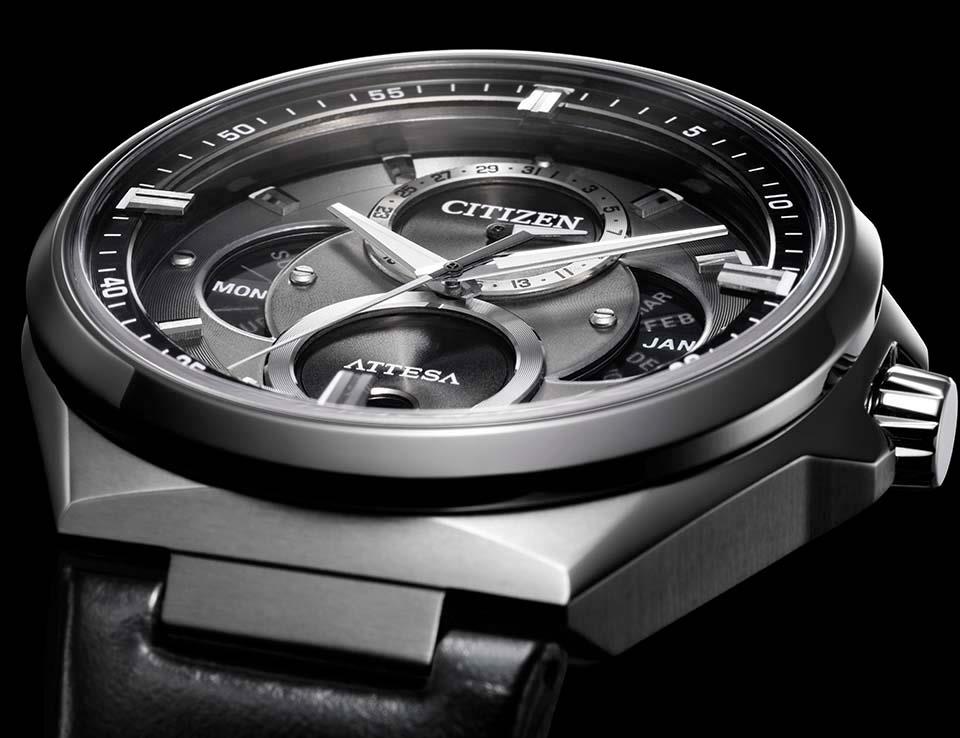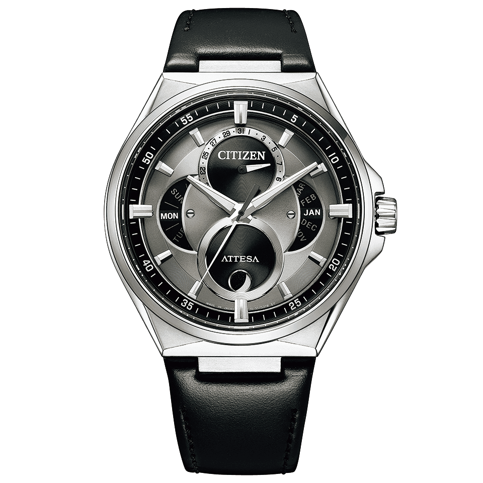 多様化するビジネススタイルに合わせ、スーツスタイルとカジュアルの両方で使える力強く軽快なデザインの「ACT Line」から、トリプルカレンダーとムーンフェイズを搭載したモデルが登場。文字板に「ATTESA」のブランドロゴを復活させるとともに、既存モデルにはない魅力と価値を追求しました。