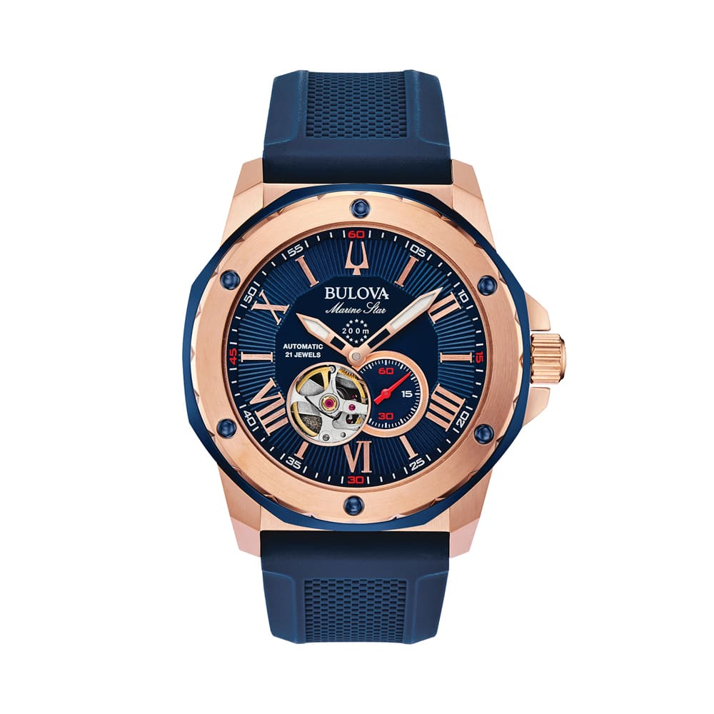 1970年代に誕生したブローバの代表コレクション、マリンスター。高気圧防水で優れた機能を備える実用時計でありながら、気品にあふれたスポーティーな表情とラグジュアリーなデザインが特徴です。豊富なカラーバリエーションが揃い、オン・オフを問わずたのしめるコレクション。創業当時、宝飾店を生業としたブローバは、マリンウォッチにおいても、ワンランク上の美しさを提案します。