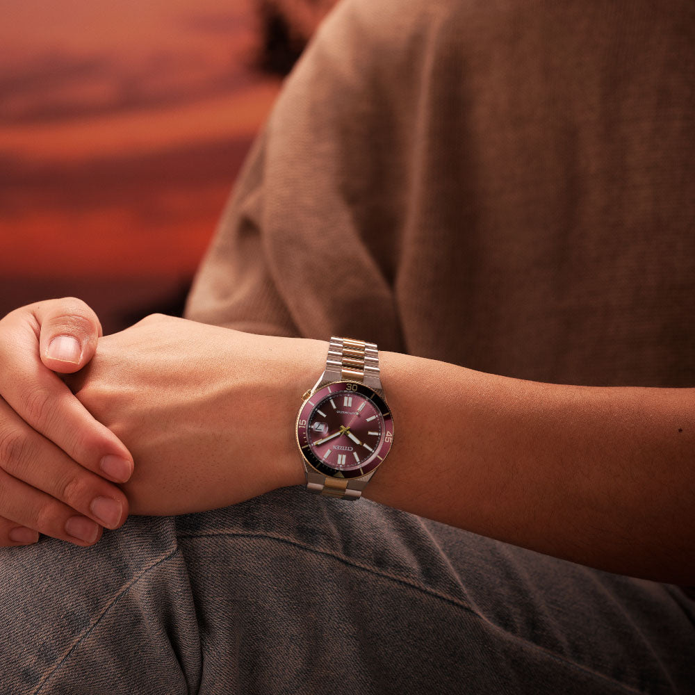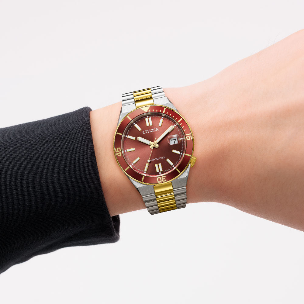 豊富なカラーバリエーションが人気のTSUYOSAから、「Shore(海岸)」をテーマに、海辺で感じる躍動感をデザインに落とし込んだ、力強くスポーティなルックスの新作が登場。着け心地にこだわった腕なじみの良い3列バンドに、上質な仕上げの中留板を採用し、高級感をプラス。着けているだけで楽しい気分になれる、カラフルで個性あふれる文字板カラーと120クリックの逆回転防止ベゼルが、時計を操作する楽しさを体験させてくれます。シースルーバックの裏ぶたで、機械式時計ならではの回転する錘(おもり)やメカの動きも楽しめます。アクティブなシーンでも活躍する10気圧防水仕様もポイント。