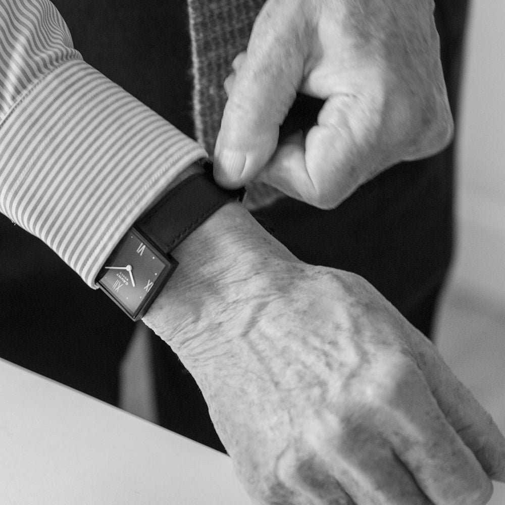 「時計のデザインを依頼されたとき、私はこれまでグローニョ市庁舎とアトーチャ駅の時計をデザインしたことを思い出さずにはいられなかった。時計は一日の頂上である12時(正午)を境に、午前と午後を区別する日々の活動に関連したもので、デジタルの時計が刻むような瞬間の連続ではない。メートル単位で考えることに慣れ、ミリメートルや10分の1ミリメートルを使って仕事をすることは、素材の質感が常に手首に感じられるような、規律正しい作業だった。」