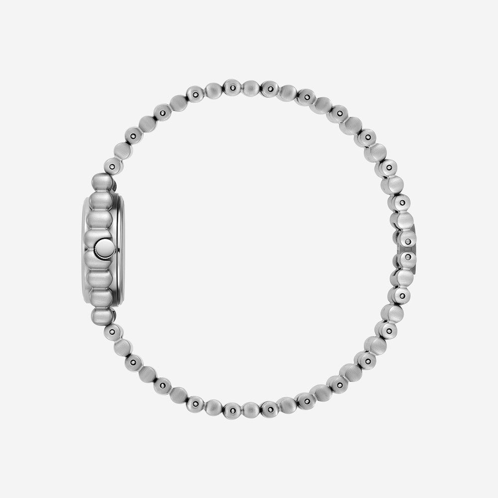 CODAの最大の特徴は、彫刻的で連続性のあるカプセル型リンクのブレスレット。手首を優しく包み込み、途切れのない滑らかなラインが、絶えず変化し続ける人生の流れを表現しています。そのフォルムはまるで1つの彫刻作品のように仕上げられ、視覚的にも触覚的にも印象的です。