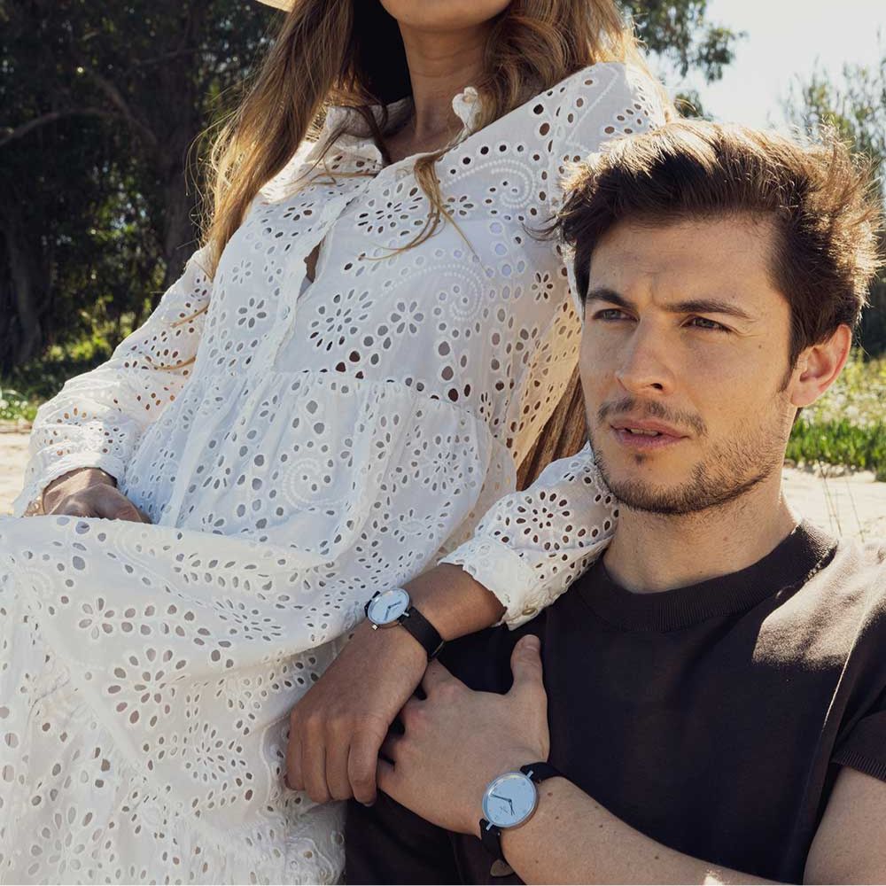 薄型のスチールケースとイタリア製レザーストラップは1つのリンクで繋がり、ブレスレットのような着用感です。
