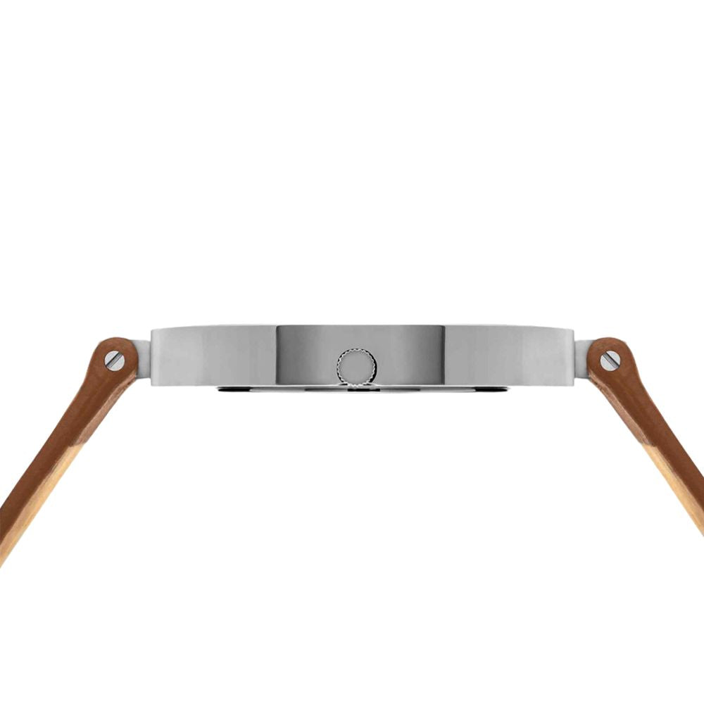 薄型のスチールケースとイタリア製レザーストラップは1つのリンクで繋がり、ブレスレットのような着用感です。