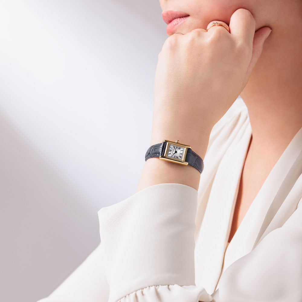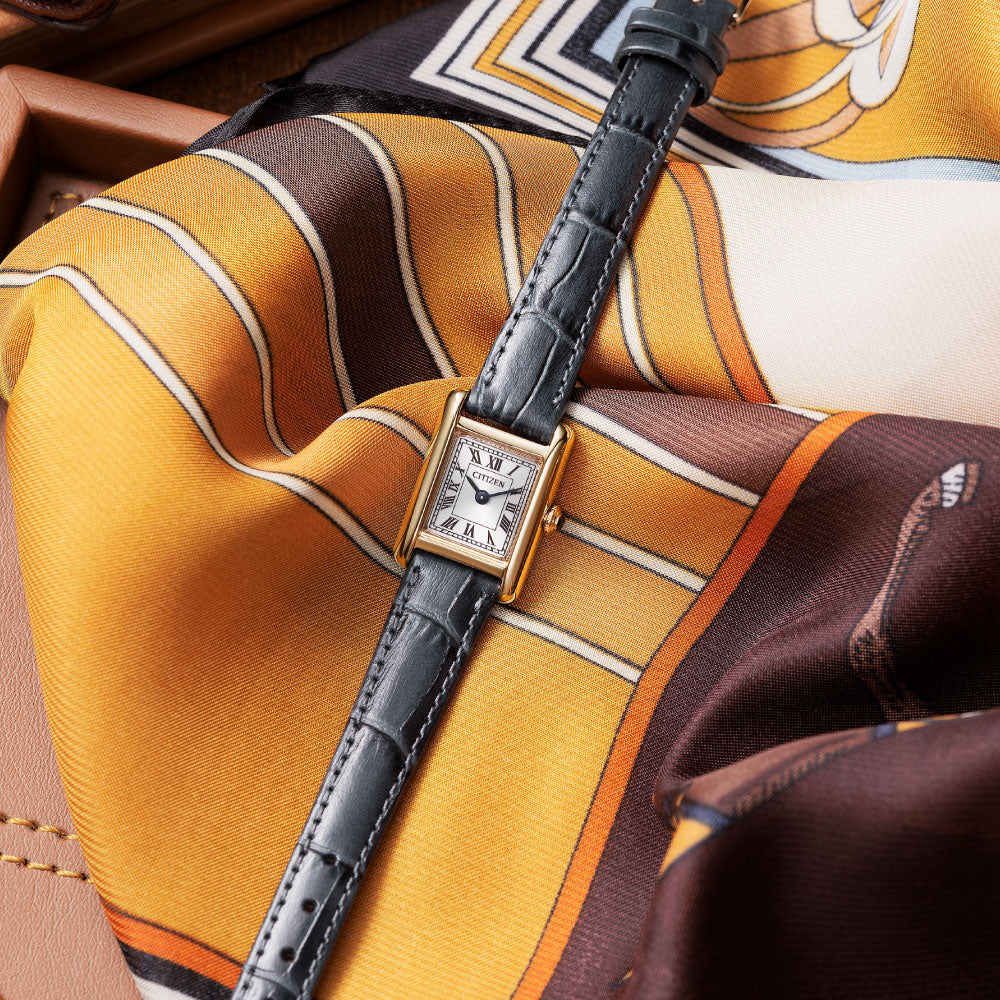 Classic Squareヴィンテージ調の雰囲気を漂わせながらも、優しさと落ち着きを感じるデザイン。サイドに丸みを持たせたケースが、洗練された優しさを醸し出します。ローマ数字で統一したインデックスと型押しを施した牛革バンドが、落ち着きのあるクラシカルな表情を際立たせています。少し大きめのりゅうずが小ぶりなケースにアクセントを添えます。