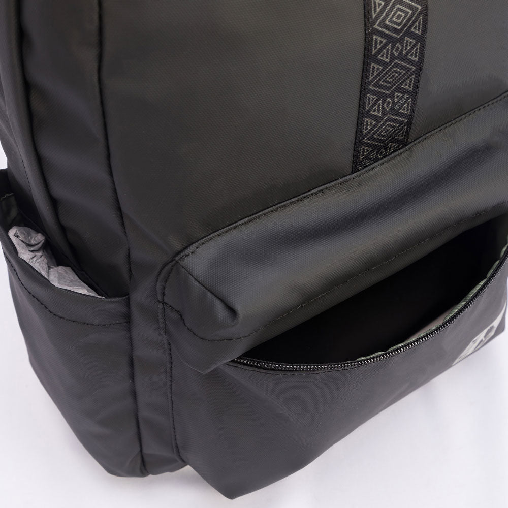 ディテール:コーテッドマテリアル / INUKリフレクターロゴ / YKK防水ジッパー / オーガナイザー付きメインポケット