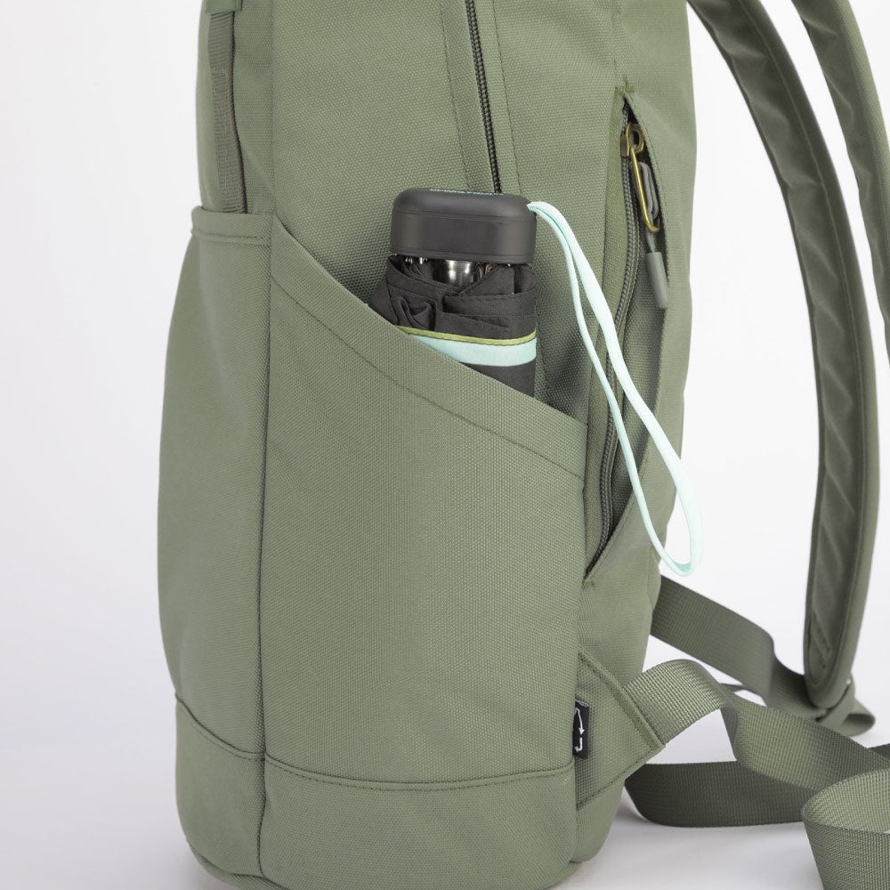 ディテール:100%リサイクルポリエステル / 撥水加工 / 背面セキュリティポケット / 2wayデザイン