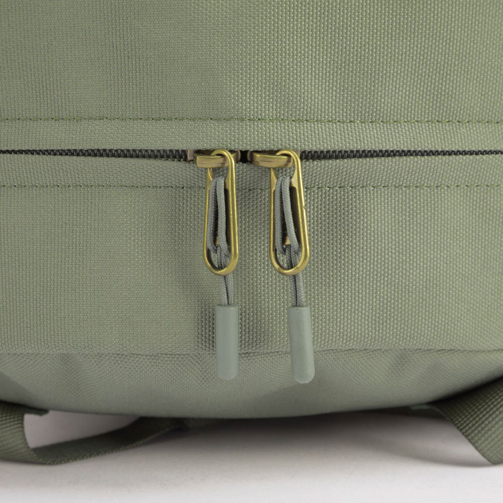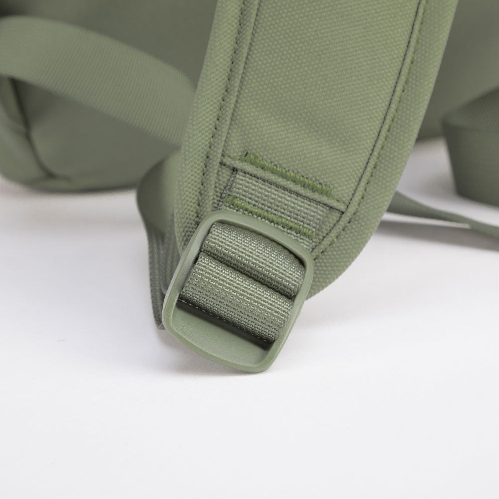 新しいリサイクル生地は今までのポリエステル生地同等高品質なものですが、製造過程において温室効果ガス排出量を減少し、原材料の源として石油由来製品への依存を減らす努力をしています。ウェビングも同じようにリサイクル生地で採用しています。
