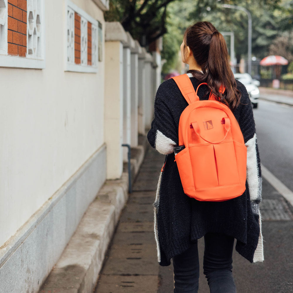 外ポケットの配置が絶妙でエコバッグや折りたたみ傘の収納に便利です。背面の隠しポケット(セキュリティポケット)のファンが多数いらっしゃいます!