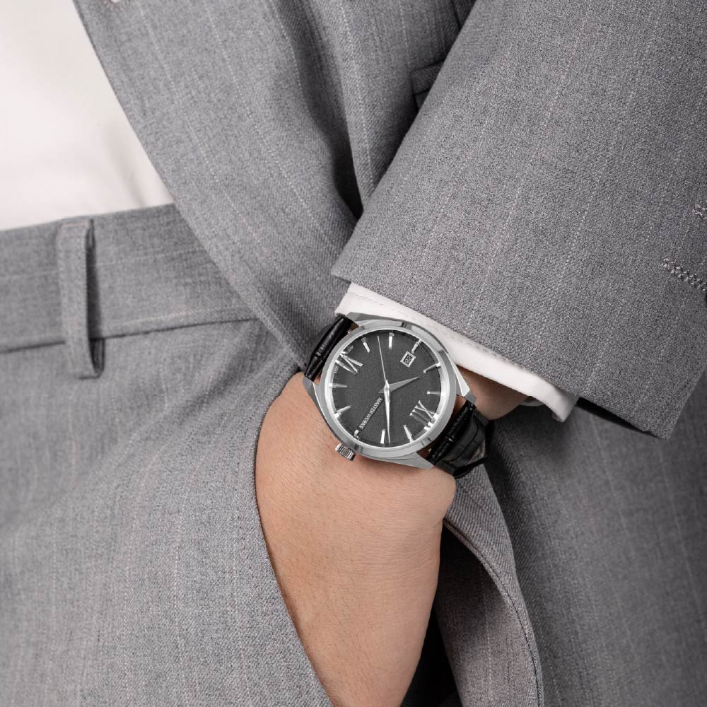 バンドはイタリア製レザーを使用し高級感と快適さを両立しています。
