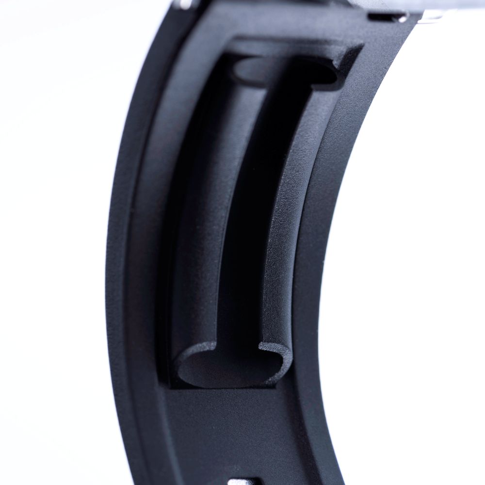 ヴィンテージ風の美しさとカメラのデザインを維持しながら、サイズを縮小することで、あらゆる手首のサイズに対応する着け心地を実現しました。小ぶりで身に着けやすく、わずか87gのATL Liteは、オリジナルのATL(レザー使用時130g、メタル使用時205g)よりも大幅に軽量化されています。仕事中も、旅行中も、街を散策中も、快適に着用できるタイムピースです。 また、軽さの要因でもあるプレミアムラバーストラップは、通気性と柔軟性を確保し、長時間着用してもフィットする汗止めデザインを採用しています。