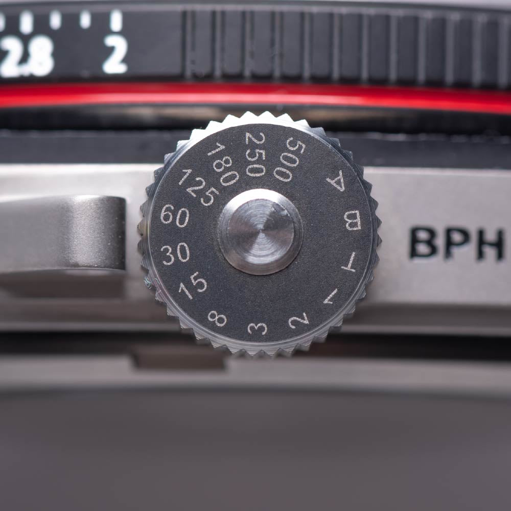 ダイヤルとレンズを縁取る赤いラインは、日本製のプロフェッショナルレンズを彷彿とさせ、視線をオープンハートの中心へと導きます。