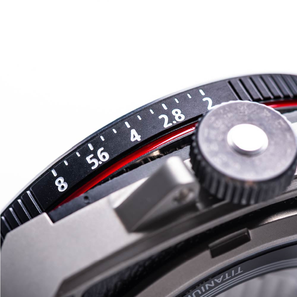 AVL III Titaniumは、カメラレンズの世界観を腕時計に落とし込んだ“Automatic Vintage Lens”シリーズの第3章。