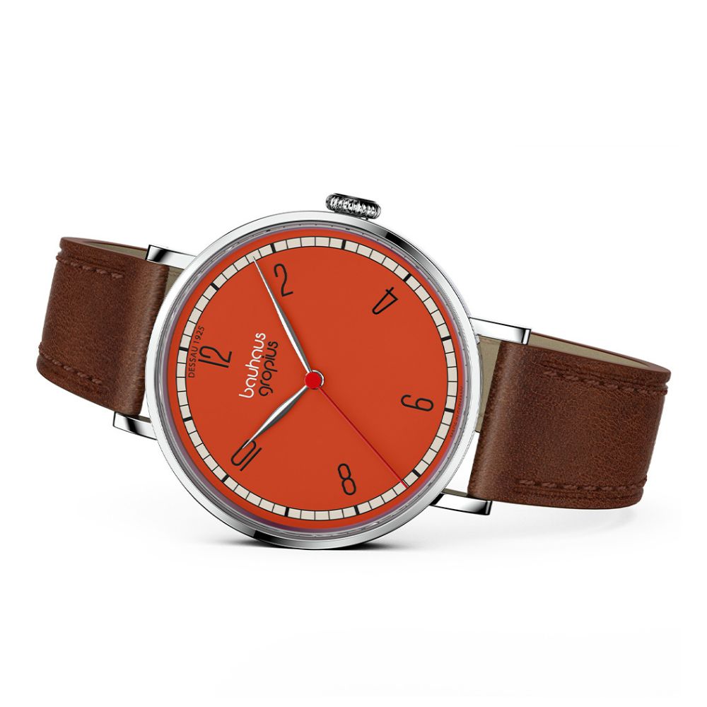 バウハウスの設立者であり、初代校長でもあるヴァルター・グロピウスのデザイン哲学を継承したプロダクトは、バウハウスが掲げる理念の本質、明快さ、そして時代を超えた普遍的なデザインを具現化し、バウハウス愛好家だけではなく、現代黄の時計愛好家にも訴えかけます。